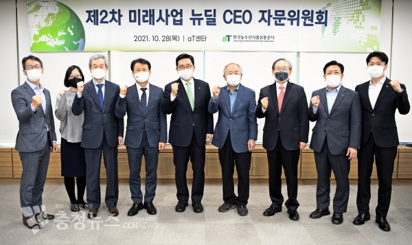 한국농수산식품유통공사(사장 김춘진)는 28일 서울 aT센터에서 제2차 미래사업 뉴딜 CEO 자문위원회를 열어 지속가능한 농어촌을 위한 미래사업에 대해 논의했다.