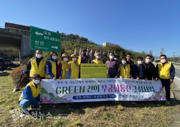참여자들은 이날 전의IC 일대에 무궁화 70주를 식재하고 환경정화를 위한 쓰레기 수거 등 활동을 벌였다.
