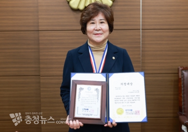 김월영 위원장은 천안시 복지 증진에 남다른 정책개발과 지원을 펼친 점과 천안시내 어르신·장애인·다문화·한부모 가정 등 사회적 취약계층에게 촘촘한 복지지원 체계를 입법화해 삶의 질을 향상한 점을 높이 펑가 받았다.
