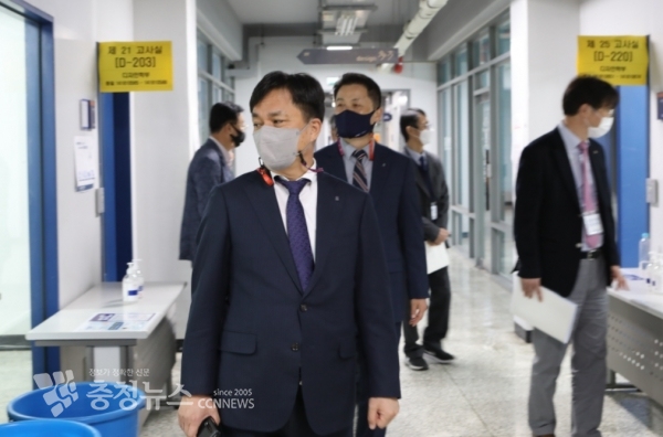 천안캠퍼스 진행된 첫날 실기고사에서 자가격리 대상 수험생이나 유증상을 보인 수험생은 없었다.