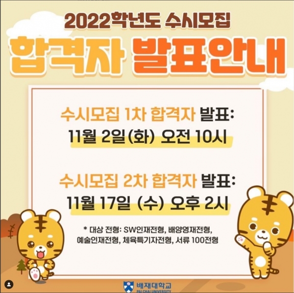 합격 여부는 배재대 입학 홈페이지(enter.pcu.ac.kr)에서 확인할 수 있다.