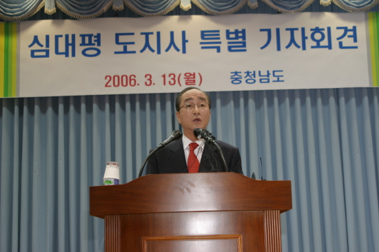 심대평 충남도지사가 13일  충남도청 대회의실에서 특별기자회견을 통해 충남지사직 사퇴를 공식 선언했다.