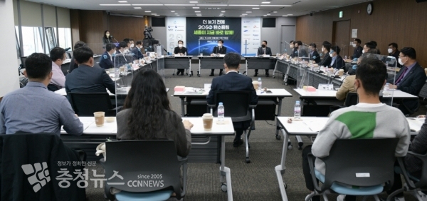 [충청뉴스 최형순 기자] 세종시는 9일 세종실에서 한국중부발전㈜ 세종발전본부를 비롯해 대·중견기업 등 13곳이 참석한 가운데 ‘탄소중립 공동대응을 위한 기업 간담회’를 개최했다.