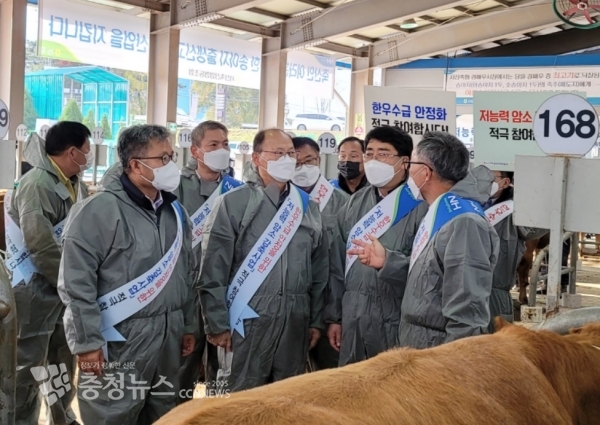 [충청뉴스 최형순 기자] 충남세종농협(본부장 길정섭)은 11일 서산축협 가축시장에서 한우수급 안정을 위해 '저능력 암소 감축사업'에 한우 사육농가의 적극적인 동참을 호소했다.