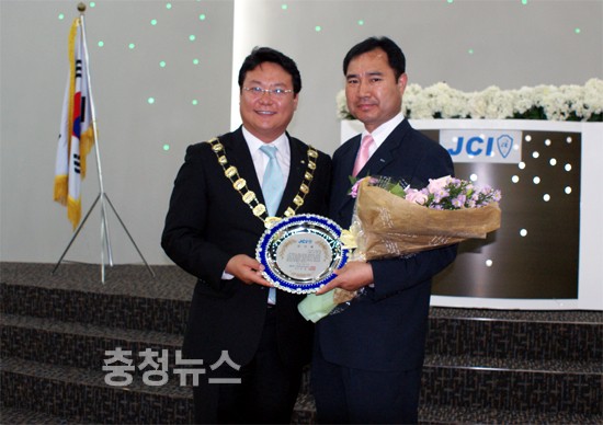 ▲ 김경섭 서대전JC 회장이 표창장을, 오양균 (주)진로 대전지점장이 상금을 수여했다.