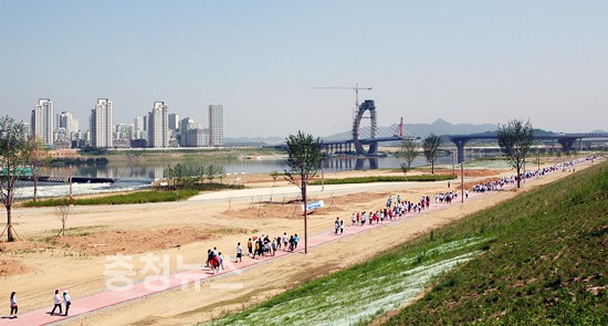 이날 행사는 새롭게 태어난 금강의 모습과 함께 돛단배를 형상화한 금강2교와 첫마을 아파트가 어우러진 멋진 경관을 배경으로 진행돼 참가자들의 감탄이 계속됐다.