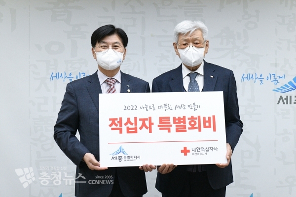 [충청뉴스 최형순 기자] 세종시는 1일 대한적십자사 대전·세종지사에 ‘2022년도 적십자 특별회비’ 300만 원을 전달했다.