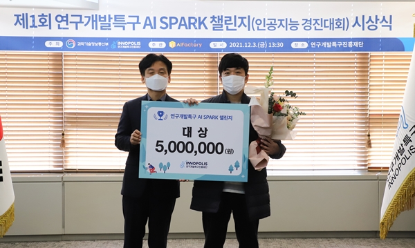 대상 수상자 kmu-agent팀 이관수 씨는 “앞으로도 특구재단에서 추진하는 인공지능 경진대회가 데이터를 분석하고 모델을 개발하는 사람들에게 많은 기회와 경험의 장이 됐으면 좋겠다”고 말했다.
