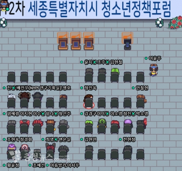 [충청뉴스 최형순 기자] 세종시청소년활동진흥센터(센터장 조주환)와 한국청소년정책연구원(원장 김현철)은 7일 메타버스 플랫폼 게더타운을 이용하여 2021년 제12차 세종특별자치시 청소년정책포럼을 개최했다.