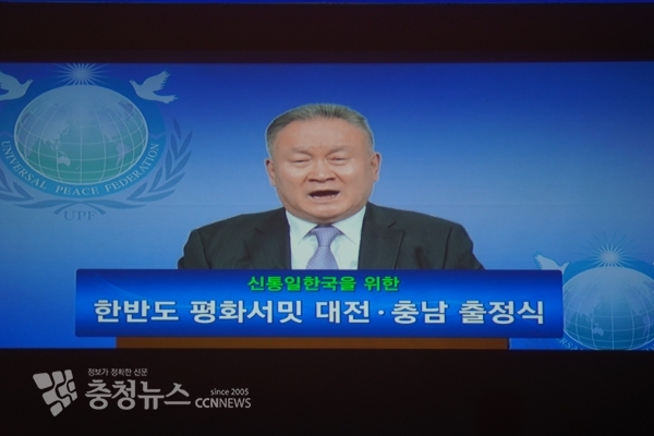 유경득 회장은 ‘한반도를 중심한 국제정세와 신통일 한국을 위한 우리의 역할’의 기조연설에서 “문선명·한학자 총재 양위분께서 이루신 업적과 기반 위에 천주평화연합를 중심하고 한반도 통일을 준비하고 있다”며 “한학자 총재님이 말씀을 통해 통일의 때가 왔음을 알 수 있다” 적극적 참여를 부탁했다.
