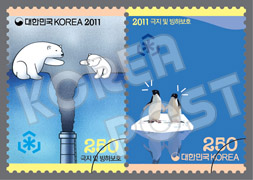 이번 특별우표는 지난해 극지와 빙하보호를 주제로 개최된 제16회 세계우표디자인공모대회에서 최우수작과 우수작으로 선정된 한주엽씨(40)의 ‘위기의 북극곰’과 레이 사이 쿤(Lei Sai Kun, 중국)의 ‘살 곳을 잃은 펭귄’을 우표로 만들었다.
