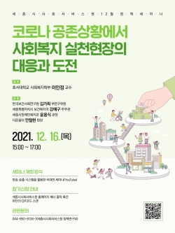 [충청뉴스 최형순 기자] 세종시사회서비스원이 오는 16일 12월 정책세미나를 개최한다고 밝혔다.