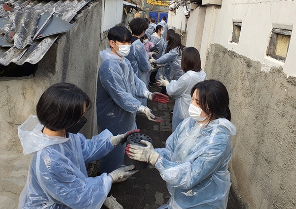 13일 목원대에 따르면 목원대학교회는 지난 11일 대전 동구 삼성동 일대에서 연탄 나누기 봉사활동을 진행했다.