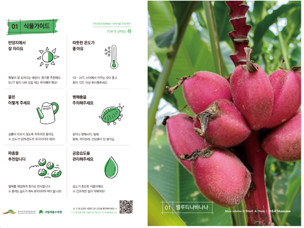 원예가이드 및 반려식물 관리카드에는 물주기·온도·병해충 관련 정보가 수록돼 있으며, 엽서 형태의 디자인으로 제작돼 수목원 방문 기념품으로 활용할 수 있다.