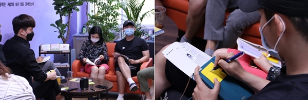 첫 번째 모임에서는 서로에 대한 이해를 높이기 위한 미션 활동이 이뤄졌다. 핵심단어 선택의 이유를 나누며 공동체 이름을 정하고 함께 사진을 찍은 뒤 이를 은어송아카이브(패들렛)에 탑재했다. 또 핵심단어와 관련한 경험을 공유하며 이를 시 형태로 제작한 뒤 학생들에게 공개하는 시간을 가졌다.