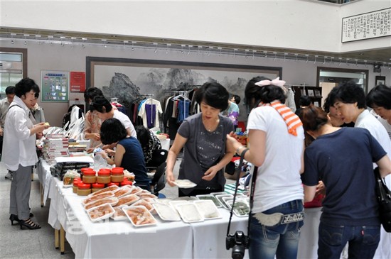 재봉틀을 이용한 자수공예반 교수가 만든 베개는 개장과 동시에 동이 났으며, 또 나날이 높아지는 여름철 수은주를 대적해 줄 더위 퇴치용 부채는 서예와 문인화반 교수가 직접 글씨를 새겨 넣어 인기리에 판매됐으며 이밖에도 손뜨개반 교수가 직접 만든 항균 수세미도 알뜰한 주부들의 인기를 끌었다.