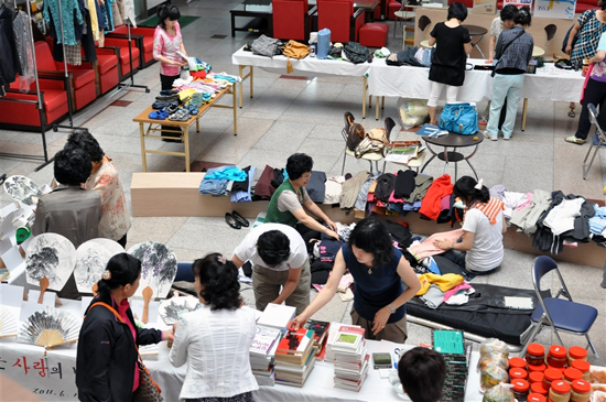 평생교육문화센터에서 강의를 맡고 있는 교수진들로 구성된 교우회(회장 전병택)는 이웃사랑 실천을 위해 13일부터 이틀간 센터 1층 로비에서‘사랑 나눔 바자회’를 열었다.
