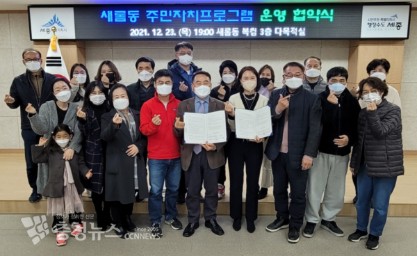 [충청뉴스 최형순 기자] 세종특별자치시 새롬동(동장 김산옥)이 23일 새롬동 주민자치회(회장 안주성)와 주민자치센터 프로그램 민간위탁 협약을 체결했다.
