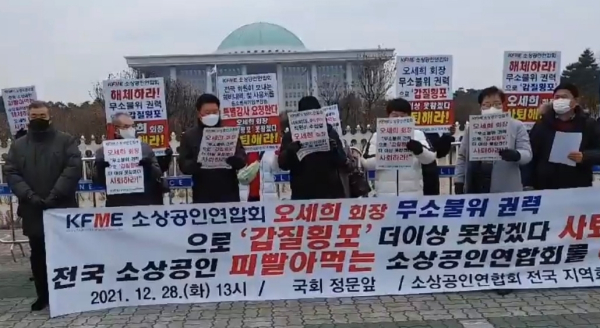또한, "▲힘없는 소상공인 이용만 하려는 정치인은 나랏일에 힘쓰시고, 무소불위 권력으로 소상공인 대상으로 갑질횡포’하는 중앙회장 오세희와 강남 큰손 중앙회장 오세희를 권칠승 장관은 특별감사 지시해라! ▲소상공인연합회 정부예산 증액 반대한다. 전국 소상공인에게는 해당없다 중앙회만 배부르며, ‘갑질횡포’만 심해진다. 전국 소상공인 피빨아먹는 소상공인연합회를 해체하라!