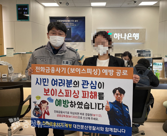 [충청뉴스 김윤아 기자] 대전둔산경찰서(서장 맹병렬)는 30일 보이스피싱 피해를 예방한 하나은행 A계장에게 신고보상금과 감사장을 수여했다.