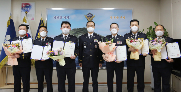 승진 임용 대상자는 경위에서 1계급 승진한 경감 김진희(경비구조과), 경감 나상영(장비관리운영팀), 경감 정해송(마검포파출소), 경감 안용희(P-99정), 경감 이병구(방제9호정), 경감 유용식(방제9호정) 등 6명이며, 승진 임명장 전달과 계급장 부착, 꽃다발 수여가 진행됐다.