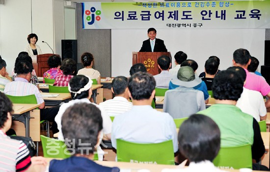 대전 중구(구청장 박용갑)는 21일 신규 의료급여수급자로 책정된 주민들이 적기에 필요한 서비스를 제공받도록 하기 위해 신규 수급권자 100여 명을 대상으로 보건지소 회의실에서 ‘의료급여제도 교육’을 실시했다.