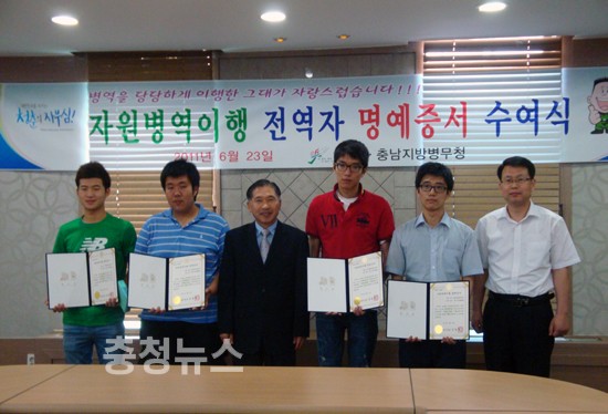대전충남지방병무청(청장 장갑수)은 23일 질병치유 자원병역이행자를 초청해 명예전역증서 수여식을 가졌다.