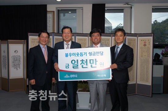 이날 하나은행 박종덕 충청사업본부 대표를 비롯해 송귀성 충남ㆍ북 영업본부장과 신현원 공주지점장은 23일 이준원 공주시장에게 어려운 이웃을 위해 써달라며, 성금 1,000만원을 기탁했다.