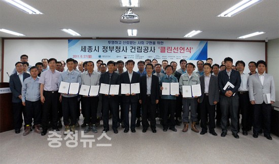 행정안전부 정부청사관리소(소장 유상수)는 27일 세종시 정부청사 건립공사 현장에서 감독 공무원 및 시공사·감리단 관계자 등 50여명이 참석한 가운데 ‘클린선언식’을 개최했다.