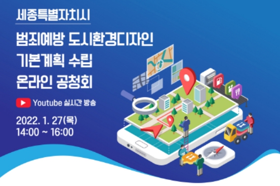 시는 오는 27일 오후 2시 ‘세종특별자치시 범죄예방 도시환경디자인 기본계획 수립용역’ 온라인 공청회를 진행한다.