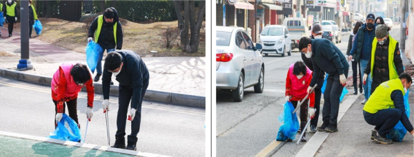 [충청뉴스 최형순 기자] 맹정호 서산시장이 23일 다가오는 설 명절을 맞아 서산시자원봉사단체협의회원들과 호수공원 일원과 서부상가 일원을 환경정화하는 모습.