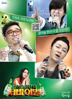 ‘나는 가수다’에서 최고의 가창력을 선보인 윤도현, 김건모, 정엽 3인이 펼치고 있는 ‘참이슬 한잔더 서바이벌’광고가 네티즌 사이에서 화제가 되고 있다.