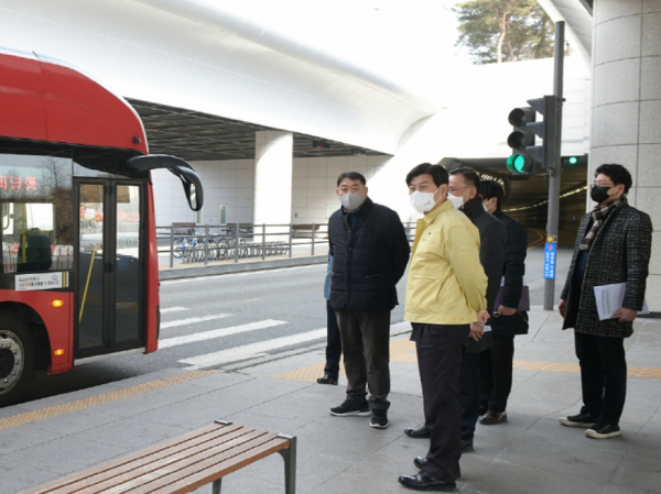 이 시장은 현장에서 ▲터미널 내‧외 시설 ▲임시주차장 정비사업 추진 방안 ▲터미널 주변 종합노선도 제작 ▲주변 버스정류장 시설 개선 등 추진사항을 점검했다.