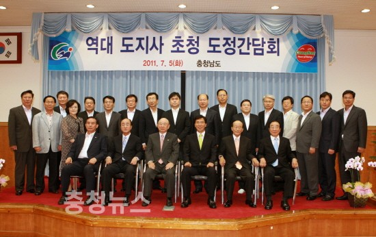 안희정 충남도지사는 5일 도청 회의실에서 역대 도지사인 안응모·한양수·심대평·이동우·박태권 전 지사들이 참여한 가운데 도정 발전상 및 현안사항 설명, 조언을 구하기 위한 간담회를 가졌다.