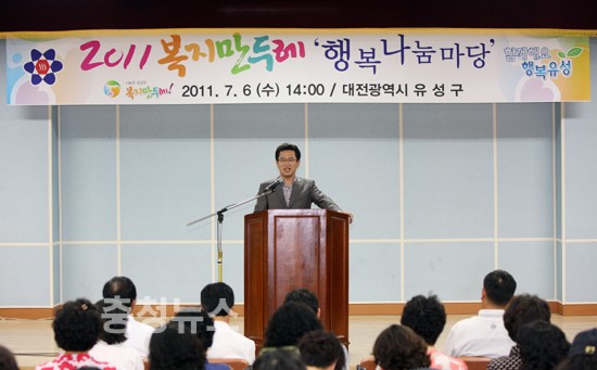 대전 유성구(구청장 허태정)는 6일 복지만두레 회원 200여명이 참석한 가운데 유성구 노인복지관에서 복지만두레 ‘행복나눔마당’을 개최하고 사회복지 실무교육과 토론의 시간을 가졌다.