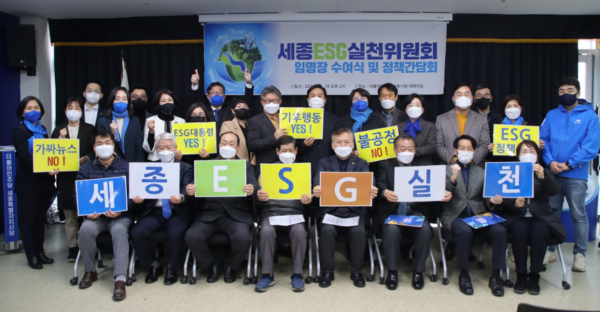 [충청뉴스 최형순 기자] 더불어민주당 대전환선대위 세종ESG실천위원회는 19일 오후 민주당 세종시당 대회의실에서 임명장 수여식 및 정책간담회를 개최했다.