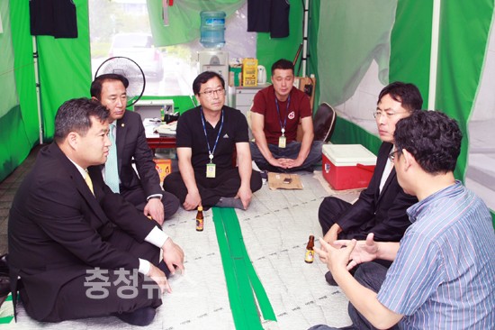 윤종일 의장, 송대윤 부의장, 윤주봉 위원장 농성장 방문