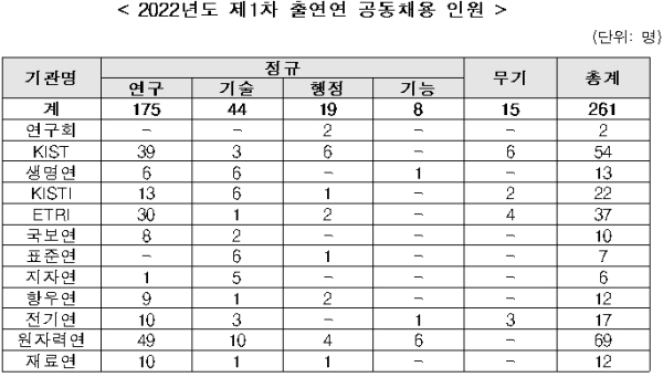 출연연 공동채용은 취업준비생의 실질적인 채용기회를 확대하고, 출연연의 행정 부담을 경감하기 위해 2020년부터 도입됐으며, 2022년 올해 세 차례에 걸쳐 진행할 예정이다.