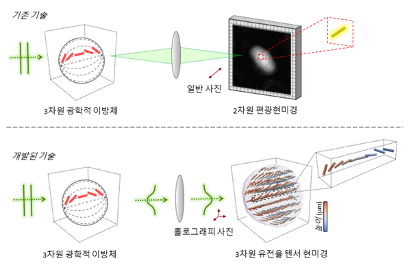 이렇게 3개의 편광 자유도를 제어하는 것과 동시에, 병원에서 사용하는 엑스레이, 컴퓨터단층(CT) 촬영처럼, 여러 각도에서 광학적 이방성 구조를 홀로그래피 현미경을 개발해 촬영함으로써 3차원 유전율 텐서를 직접적으로 측정했다.