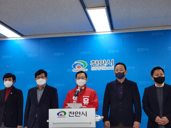 [충청뉴스 박동혁 기자] 유원희 국민의힘 천안시장 예비후보가 15일 천안시청 브리핑실에서 기자회견을 열고 천안시 경제 분야 공약을 발표했다.