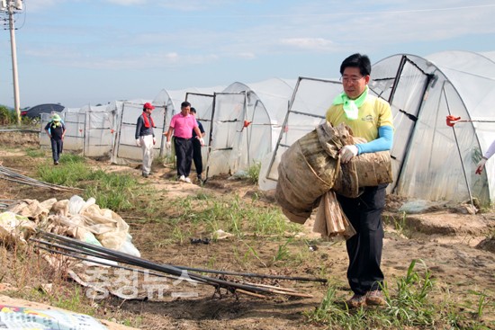 이날 복구 활동에는 양 위원장을 비롯해 충남도의원 및 시·군의원, 당직자 등 50여 명이 참여했으며, 이들은 수박재배 비닐하우스 철거작업 등 구슬땀을 흘렸다.
