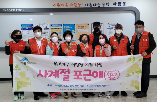 여상수 아름동장은 “계절에 따른 취약계층의 복지 욕구에 선제적으로 대응함으로써 복지안전망을 구축하기 위해 노력하겠다”라며 “여민전 지원으로 지역경제 활성화 효과도 기대하고 있다”라고 말했다.