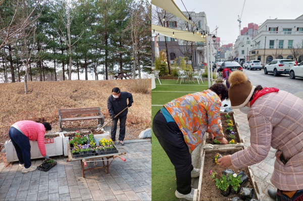 또 정성스럽게 가로화단을 가꾸며 코로나19 장기화로 우울한 사람들의 마음을 밝히고 건강한 일상 회복에 대한 희망의 메시지를 전달하고자 노력했다.