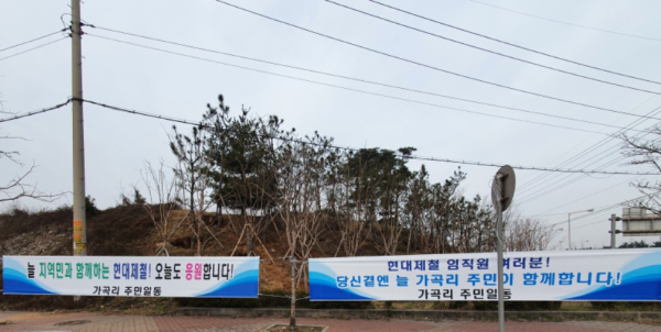 가곡리 주민들 "현대제철의 조속한 안정화 기원과 임직원 응원" 현수막 내걸어