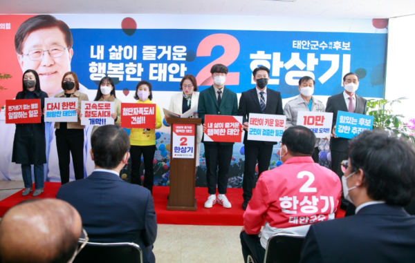 한 후보는 "마지막으로 지도자의 리더십은 도덕성에서 나온다고 했듯이 한상기가 걸어온 여정과 40여 년간의 공직생활 그리고 4년간의 태안 군정의 성과를 잘 살피셔서 다시 한번 태안군 발전과 군민을 위해 봉사할 수 있도록 뜨거운 성원과 응원"을 부탁했다.