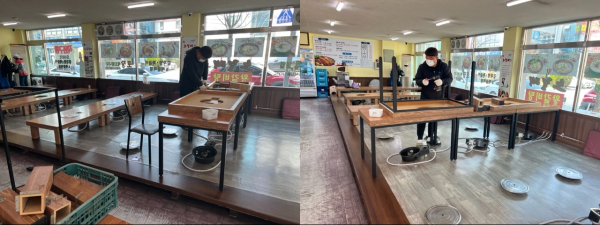 [충청뉴스 박동혁 기자] 충남 아산시가 코로나19로 어려움을 겪고 있는 소상공인을 위해 실시한 ‘음식점 좌식시설 개선 지원 사업’을 완료했다.