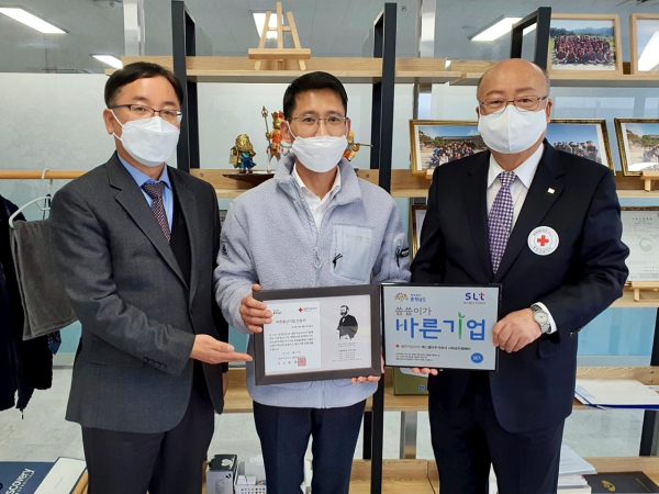 이날 전달식에 참석한 허영훈 이사는 “우리 지역의 어려운 이웃과 함께하고 싶어 대한적십자사의 바른기업 캠페인에 동참하게 됐다”라며, “앞으로도 에스엘티는 나눔에 동참해 지역사회에 보탬이 되고 싶다”라고 소감을 밝혔다.