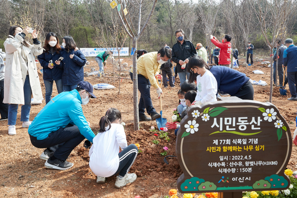[충청뉴스 박동혁 기자] 충남 아산시는 5일 둔포중앙공원에서 제77회 식목일을 기념해 시민과 함께 식목일 행사를 개최했다.