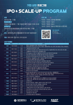 신청기업을 대상으로 4월말까지 적격성을 검토한 후 20개 기업을 선정하여 5월 3일 오리엔테이션을 시작으로 11월까지 총 16회에 걸쳐 본격적인 프로그램이 진행된다. 교육과 더불어 IPO가 임박한 우수기업 5개사를 선별해 스케일업 전문 컨설팅도 제공할 계획이다.