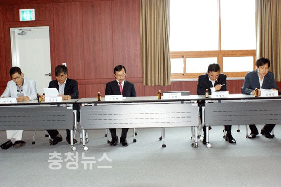 ▲ 좌부터 김동완 당진위원장, 허영일(서산·태안위원장), 김장환(공주·연기위원장), 이규용(前홍성군수), 황화성·정종학 前 도의원